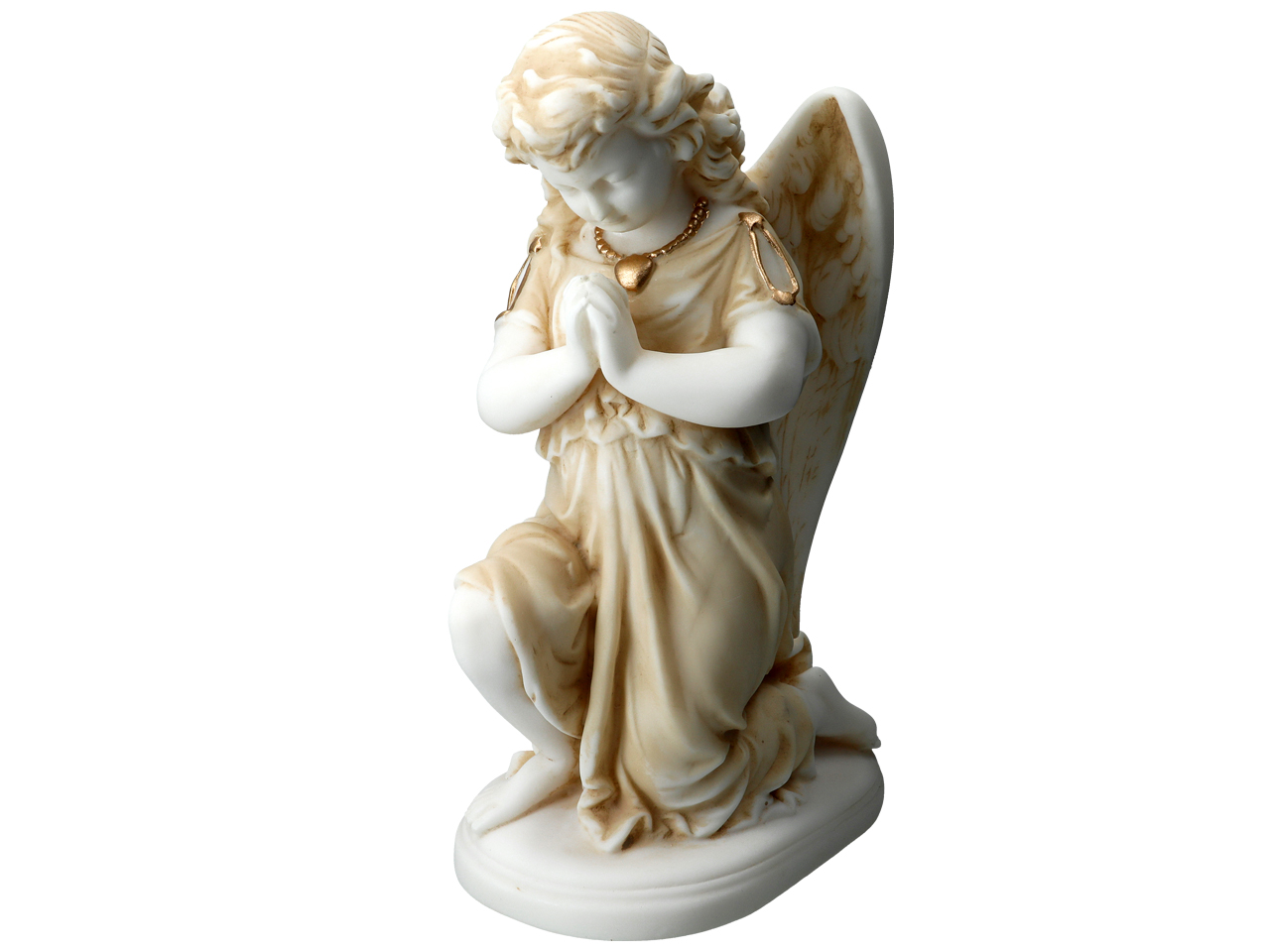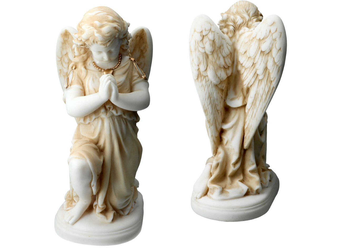 Alabastrowa figurka przedstawiająca modlącego się anioła . Już od czasów starożytnych alabaster był wysoko cenionym kamieniem ozdobnym i dekoracyjnym. Niezliczona ilość wzorów stanowi inspirację do tworzenia własnych niepowtarzalnych zbiorów aniołków