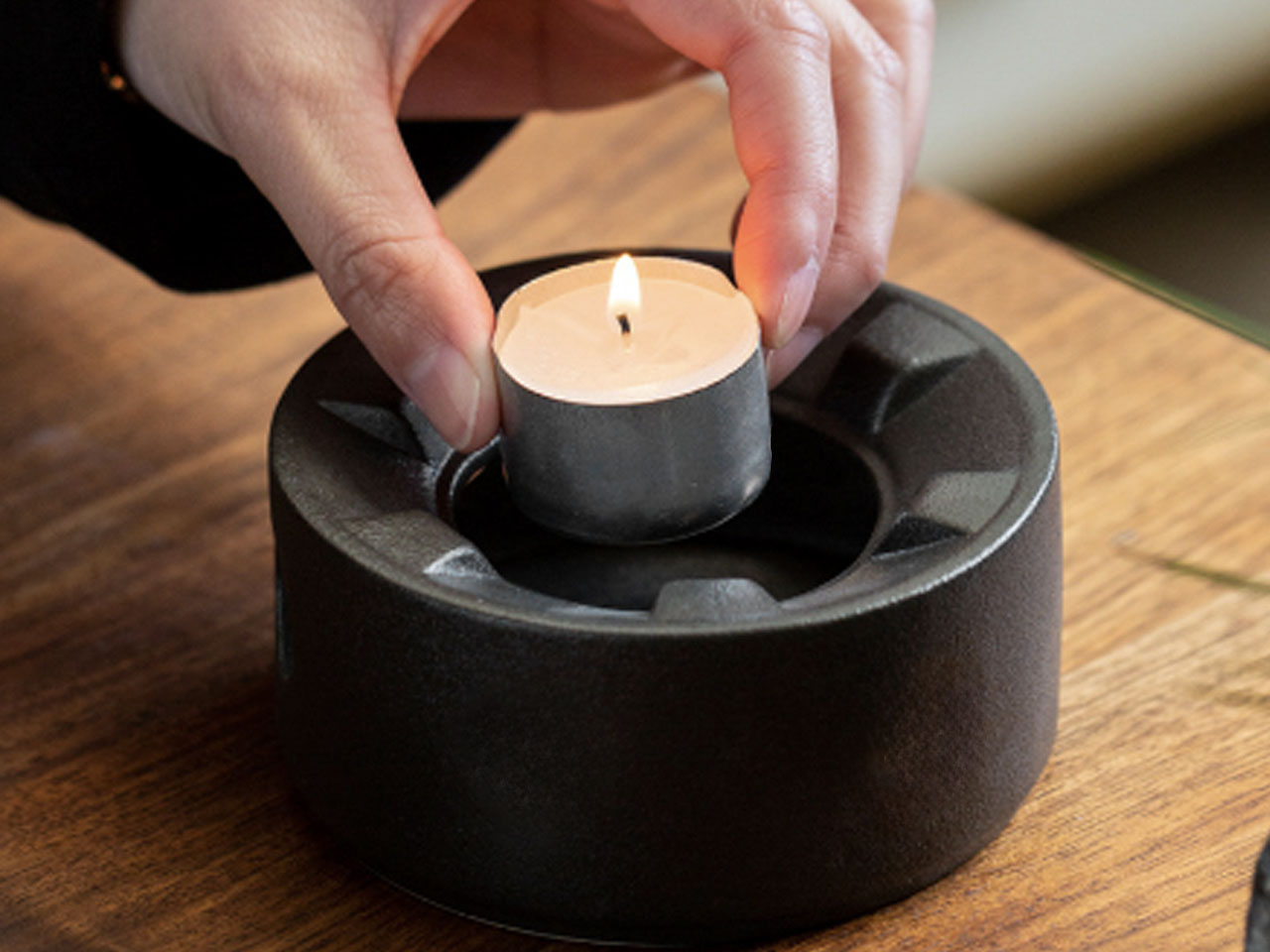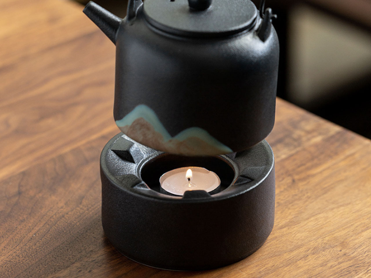 Podgrzewacz, na którym możemy podgrzać czajnik lub miseczki.