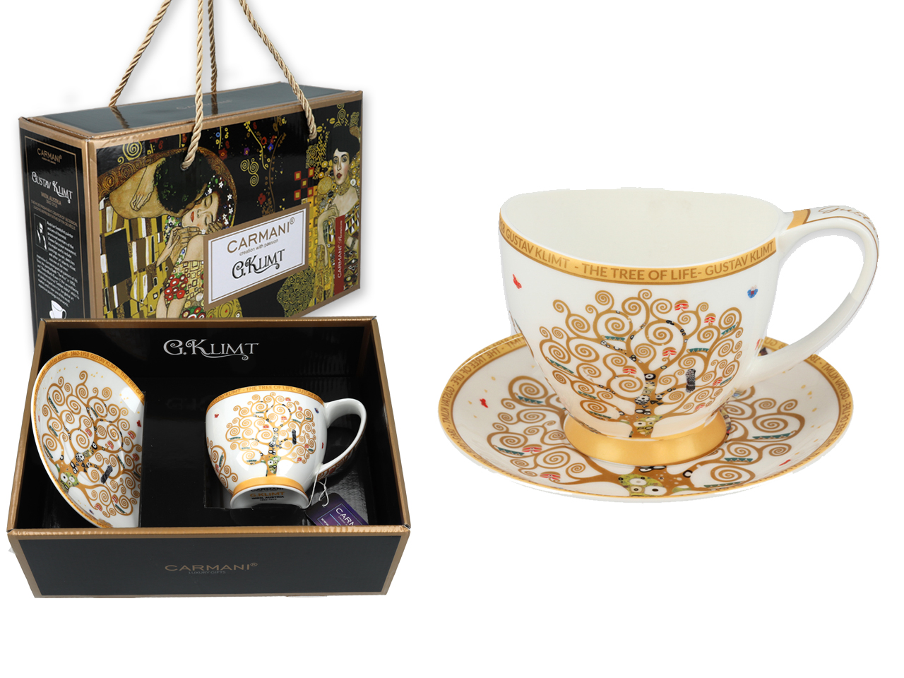 Filiżanka Big Vanessa – G. Klimt, Drzewo życia, białe tło (CARMANI)