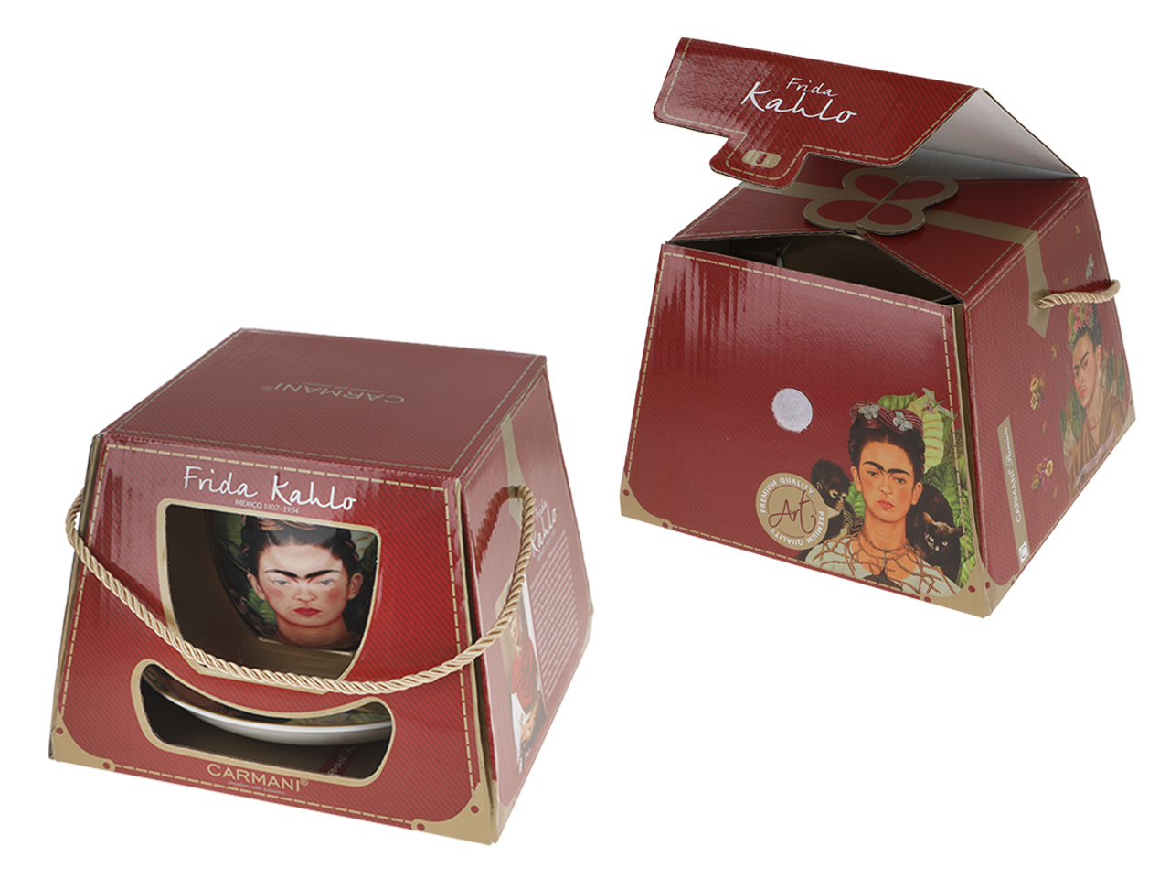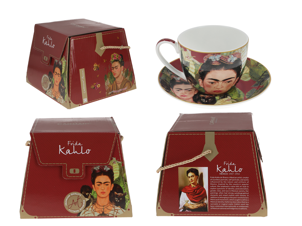 Frida Kahlo to postać fascynująca, przejmująca i inspirująca. Jej twórczośc determinowana cierpieniem fizycznym, zaskakuje kolorami, barwną meksykańską symboliką. Autoportrety malarki doskonale prezentują się na dużych filiżankach z porcelany.