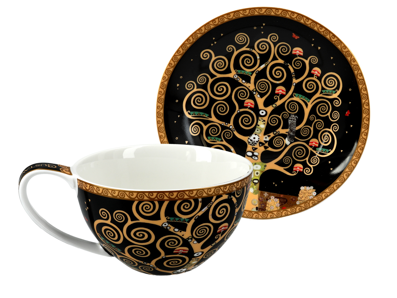 Filiżanka ze spodkiem – G. Klimt, Drzewo życia, czarne tło (CARMANI)