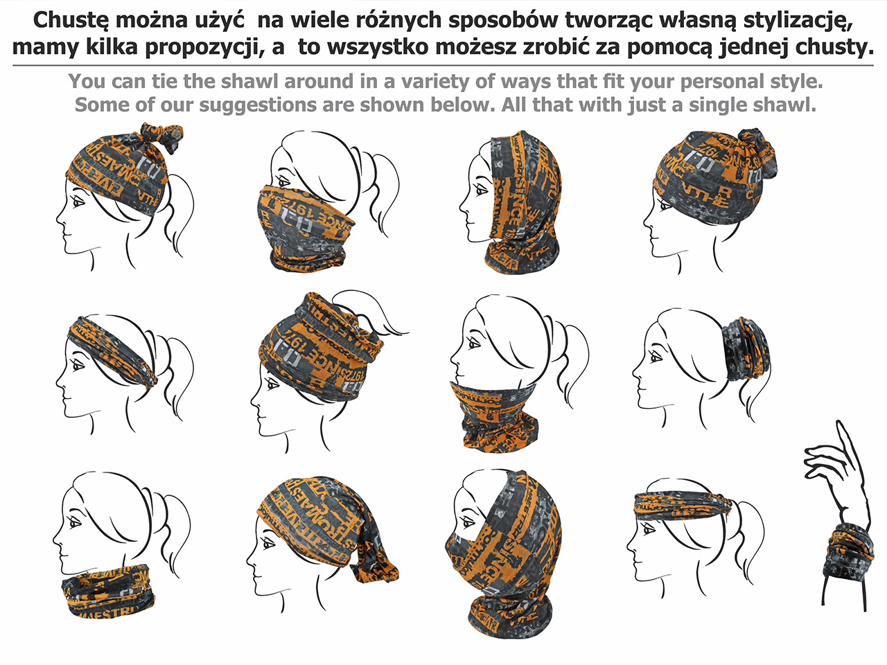 Nie lubisz maseczek? Proponujemy miękką, elastyczną i przyjemną w dotyku chustę/komin w wielu oryginalnych wzorach do wyboru. Chustę można użyć jako alternatywę maseczki – do osłony ust i nosa, ozdobę do włosów lub nosić na szyi.
