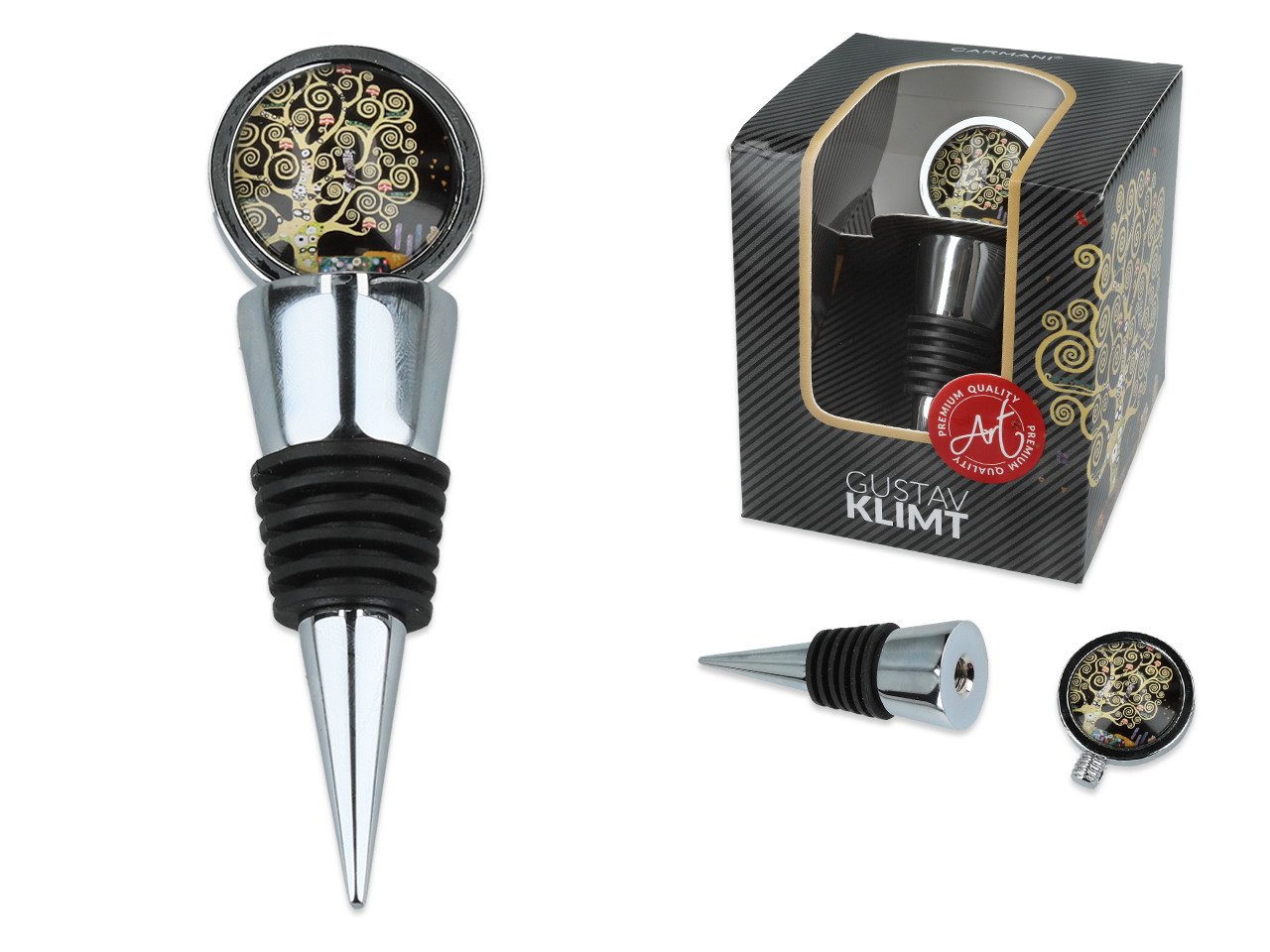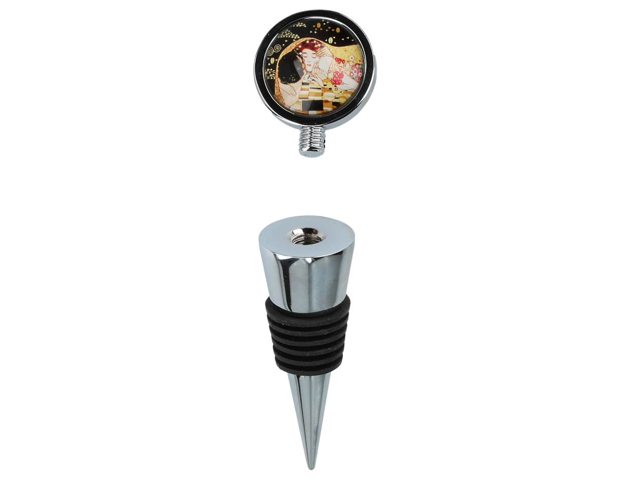 Niech każda butelka stanie się wyjątkowa. Dekoracyjny korek z motywem inspirowanym malarstwem Klimta wnosi na stół odrobinę luksusu. To nie tylko praktyczny gadżet û to detal, który podkreśla charakter spotkania i dodaje mu niepowtarzalnego klimatu.