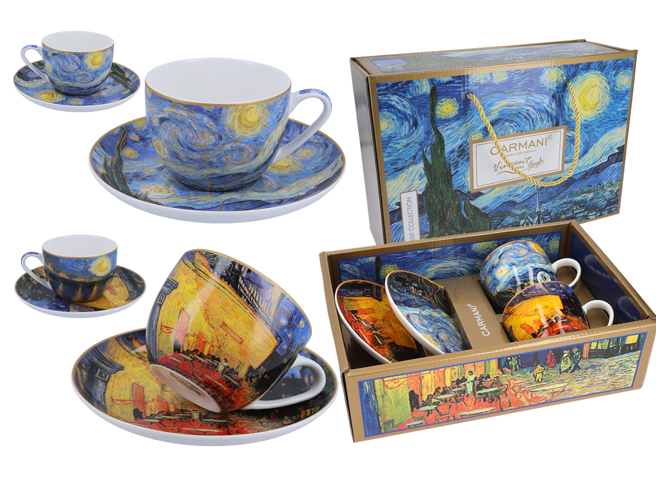 Kpl. 2 filiżanek ze spodkami – V. van Gogh, Taras kawiarni nocą i Gwiaździsta noc (CARMANI)