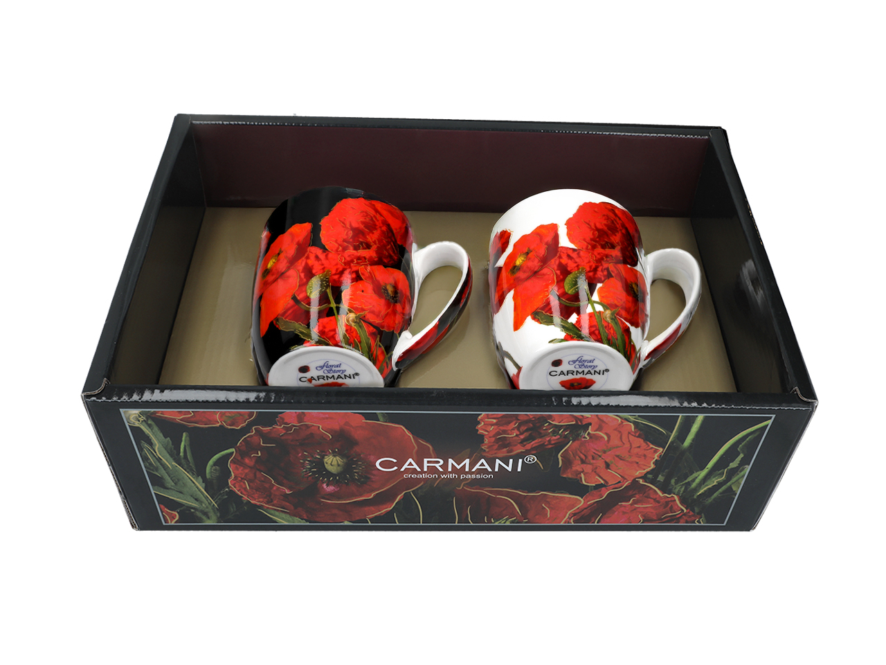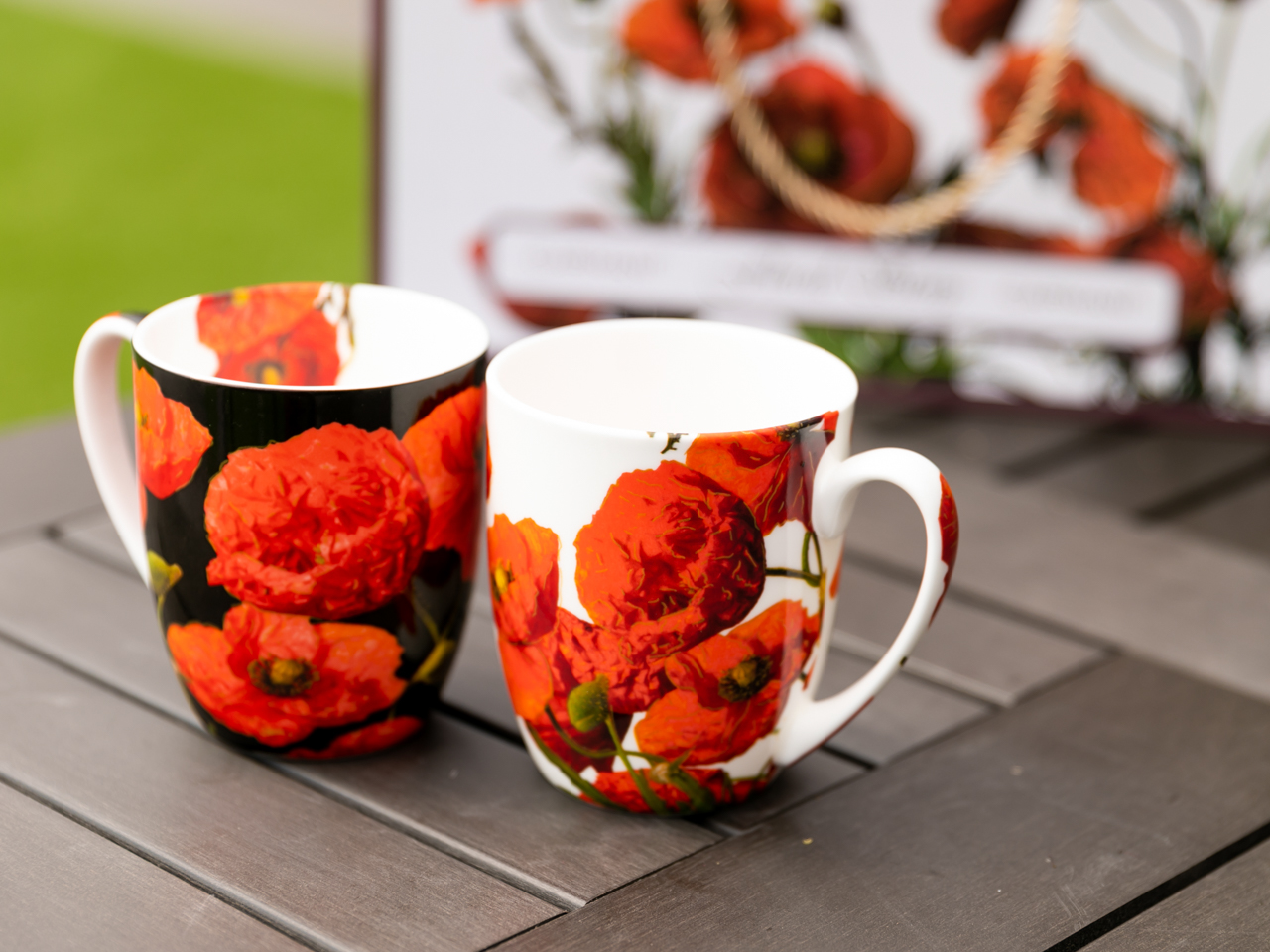 Zestaw dwóch eleganckich kubków ozdobionych makami polnymi ale każdy na innym tle. Kubki zostały zapakowane w wysokiej jakości pudełko – kuferek, co dodatkowo zwiększa prestiż produktu.