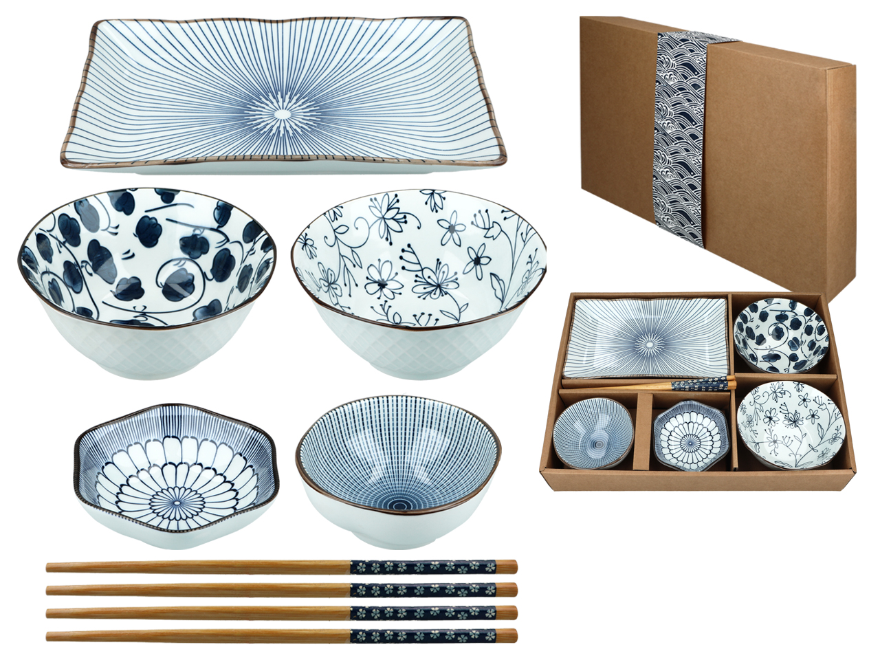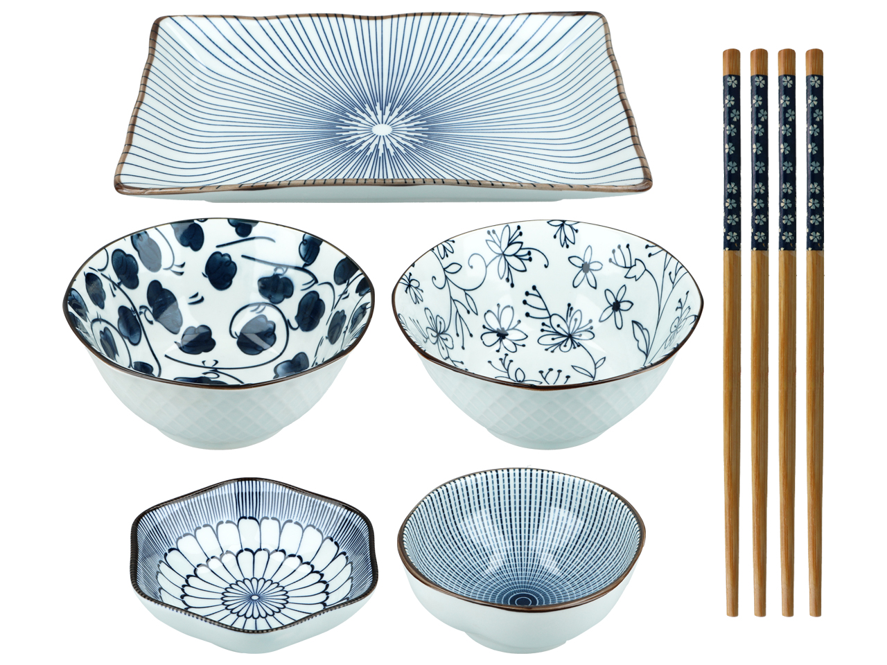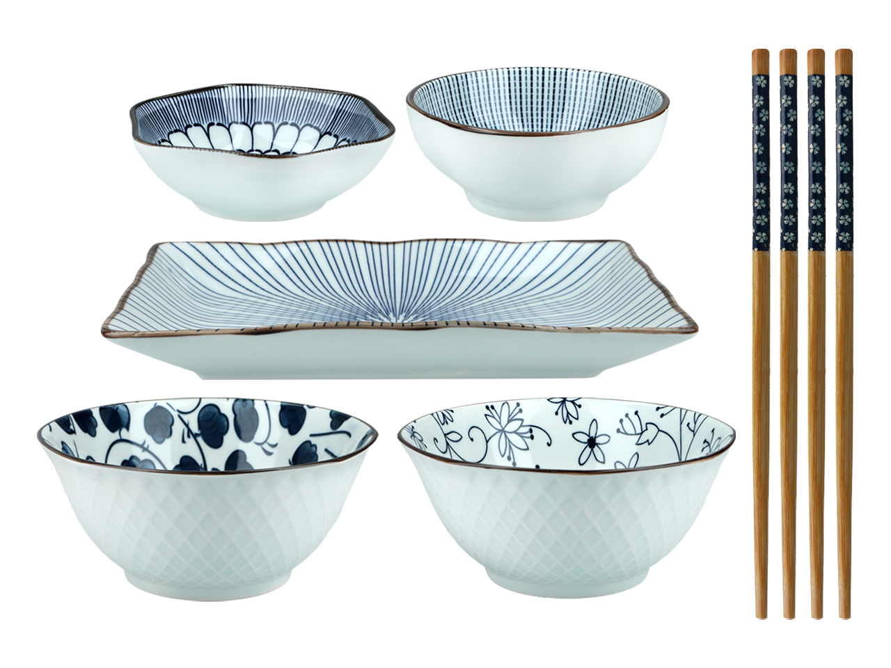 Kpl. 4 miseczek + talerz + pałeczki