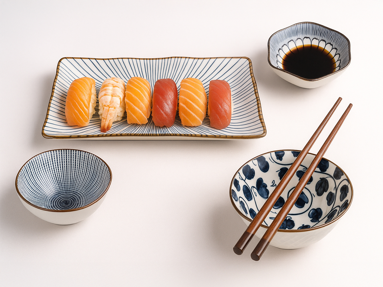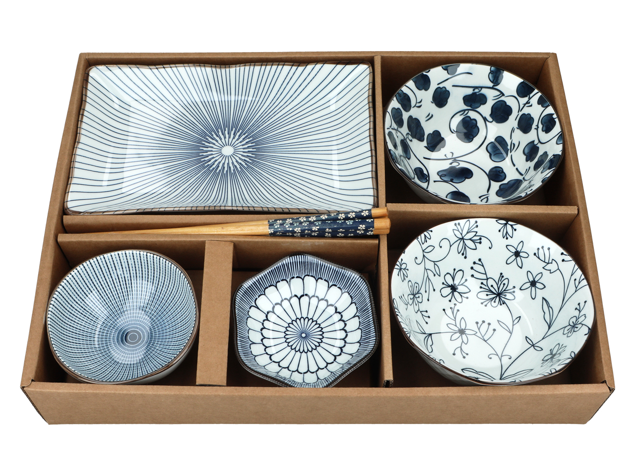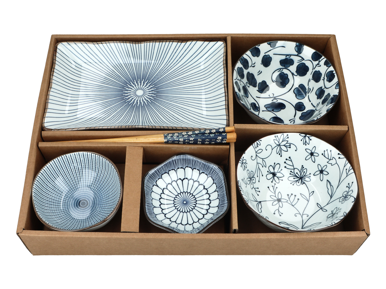 Kpl. 4 miseczek + talerz + pałeczki