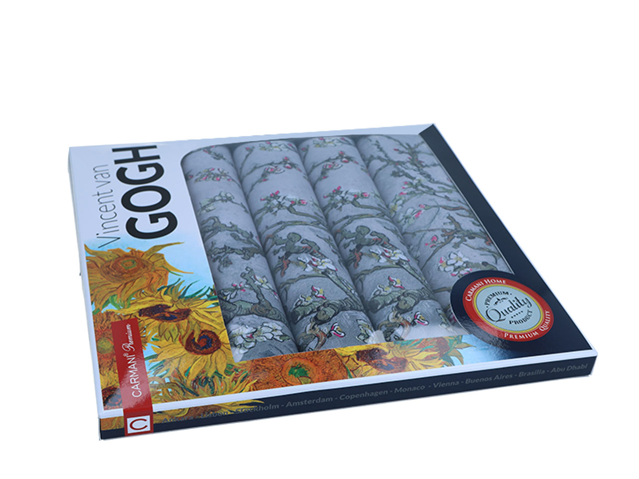 Kpl. 4 podkładek na stół – V. van Gogh, Kwitnący Migdałowiec, srebrny (CARMANI)