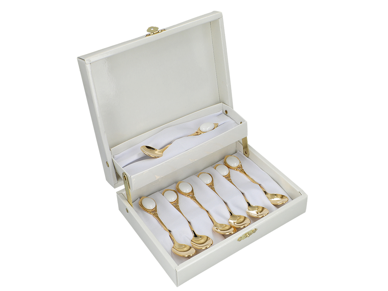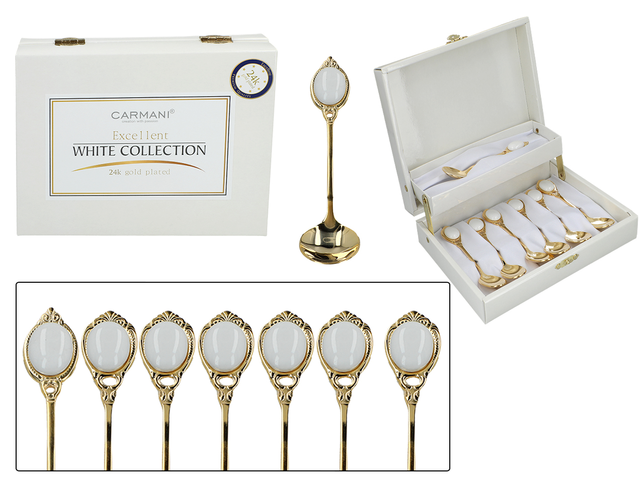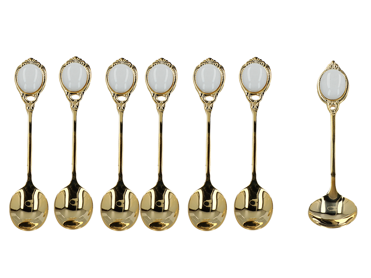 Kpl. 6 łyżeczek + 1 do cukru – Białe oczka (CARMANI)
