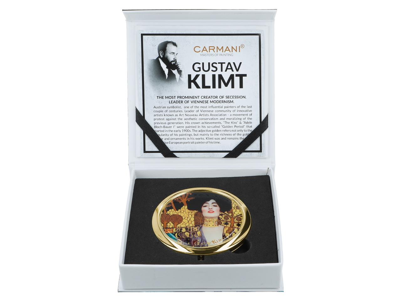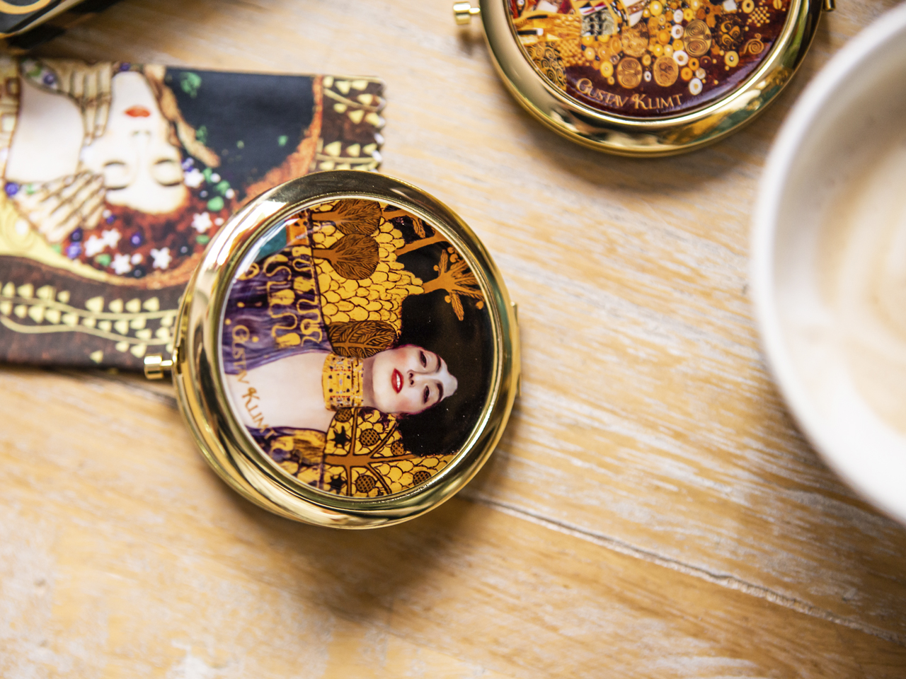 Urocze, małe lustereczko z motywem twórczości Gustava Klimta. Doskonałe do każdej kobiecej torebki. Zajmuje mało miejsca a jego piękne zdobienia dodają uroku.