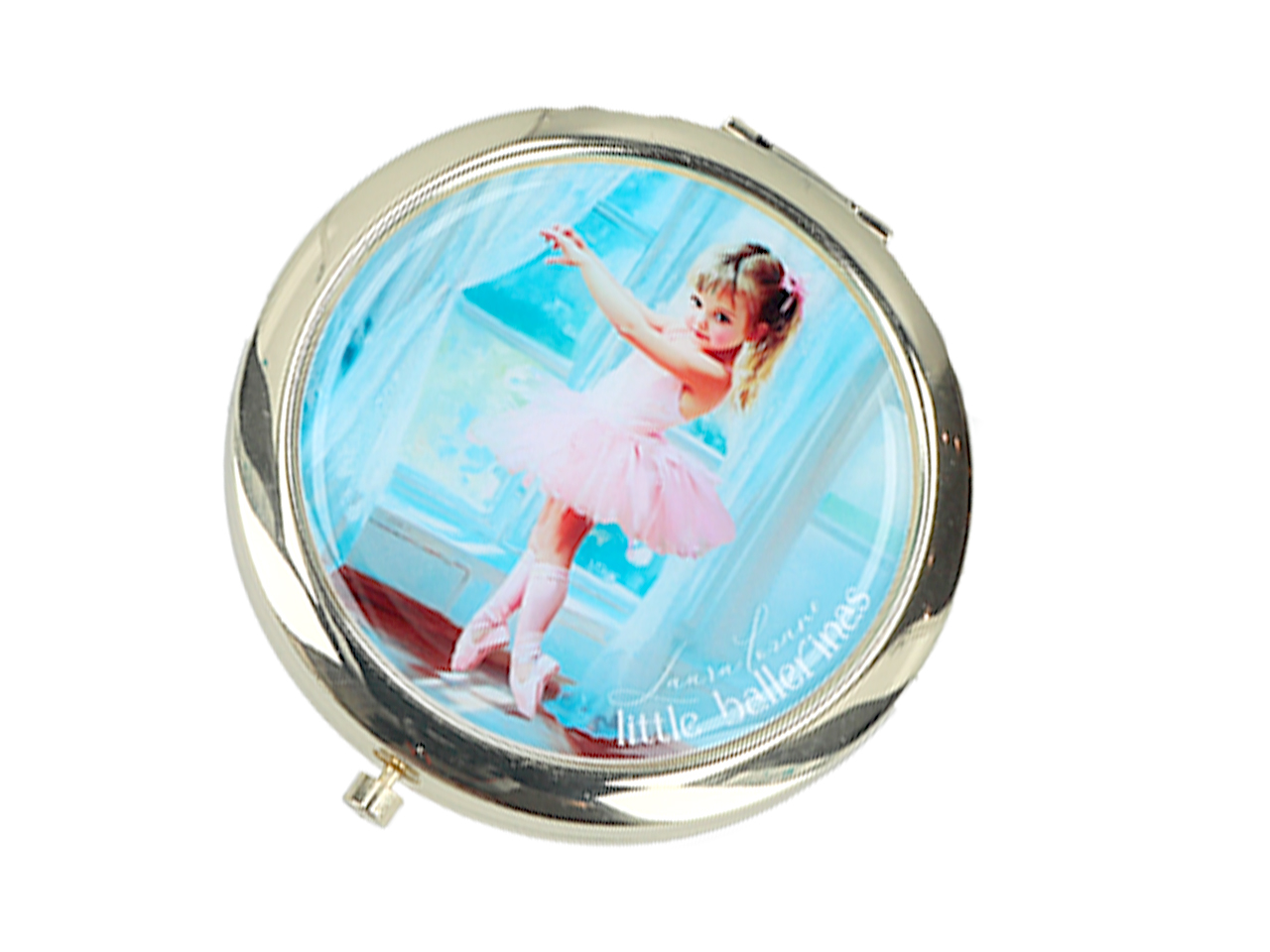 Urocze, małe lustereczko z motywem małych baletnic w czasie ćwiczeń. Doskonałe do każdej kobiecej torebki. Zajmuje mało miejsca a jego piękne zdobienia dodają uroku.