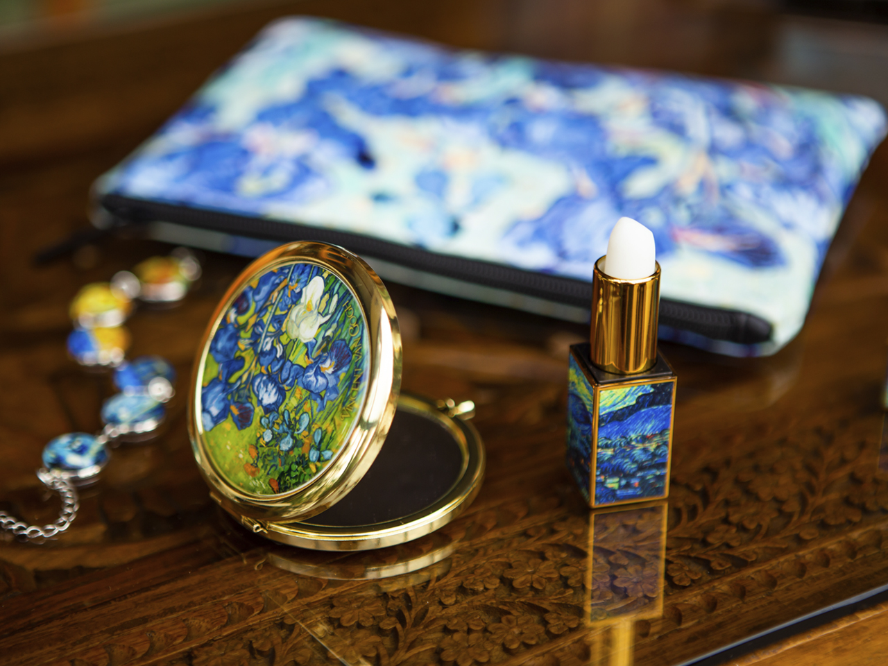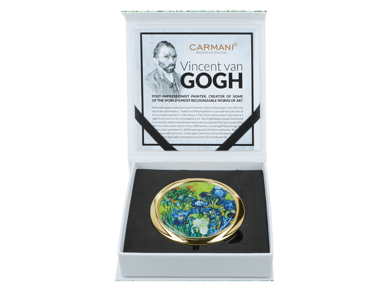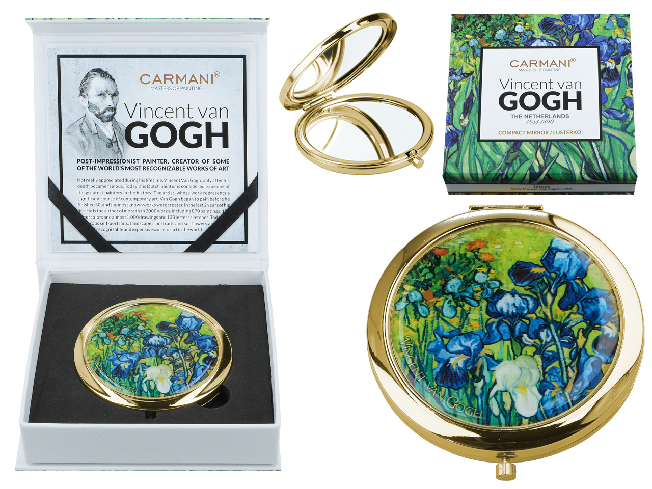 Urocze, małe lustereczko z motywem twórczości Vincenta van Gogha. Doskonałe do każdej kobiecej torebki. Zajmuje mało miejsca a jego piękne zdobienia dodają uroku.