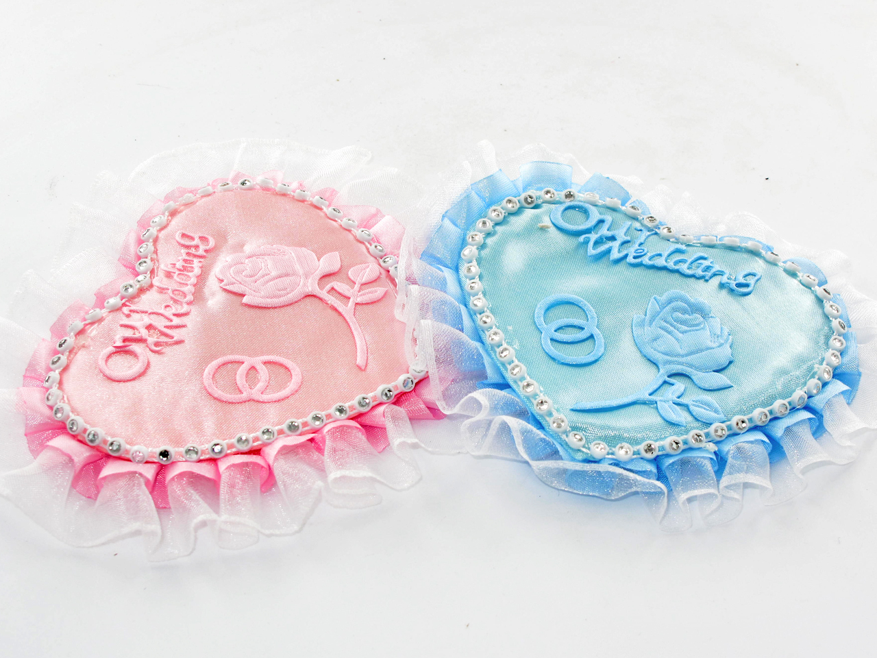 Ozdoba ślubna w kolorze błękitnym z białymi brzegami. W tym szczególnym dniu wiele zależy od detali. warto zadbać by nie zabrakło tak pięknych ozdobnych elementów. jak powyższe serduszko. symbolizujące miłość. wierność i przede