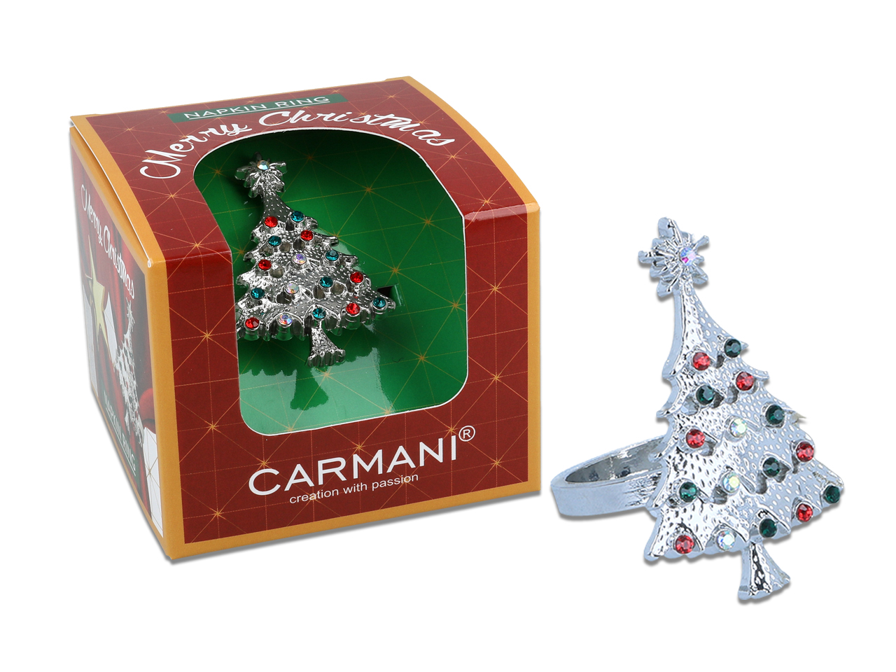 Wyjątkowa dekoracja na świąteczny stół. Eleganckie pierścienie na serwetki, z ozdobą srebrnej choinki.