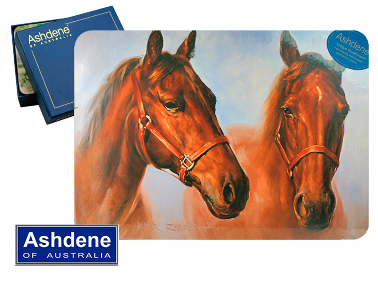 Podkładki korkowe z wizerunkiem konia pochodzą z kolekcji australijskiej firmy Ashdene. W komplecie z podkładkami sprzedawane jest wygodne i