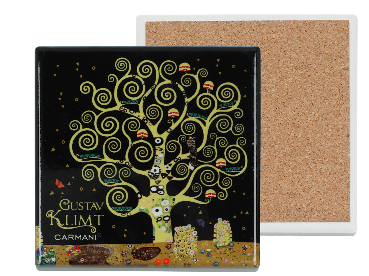 Podkładka ceramiczna, kwadratowa – G. Klimt, Drzewo życia (ciemne tło) (CARMANI)