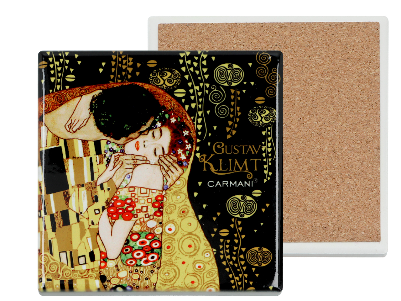 Podkładka ceramiczna, kwadratowa – G. Klimt, Pocałunek (ciemne tło) (CARMANI)