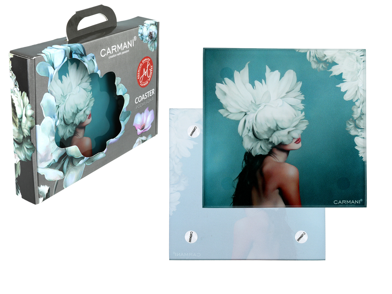 Podkładka szklana – L. Lozano, Kwiaty na głowie, turkus (CARMANI)
