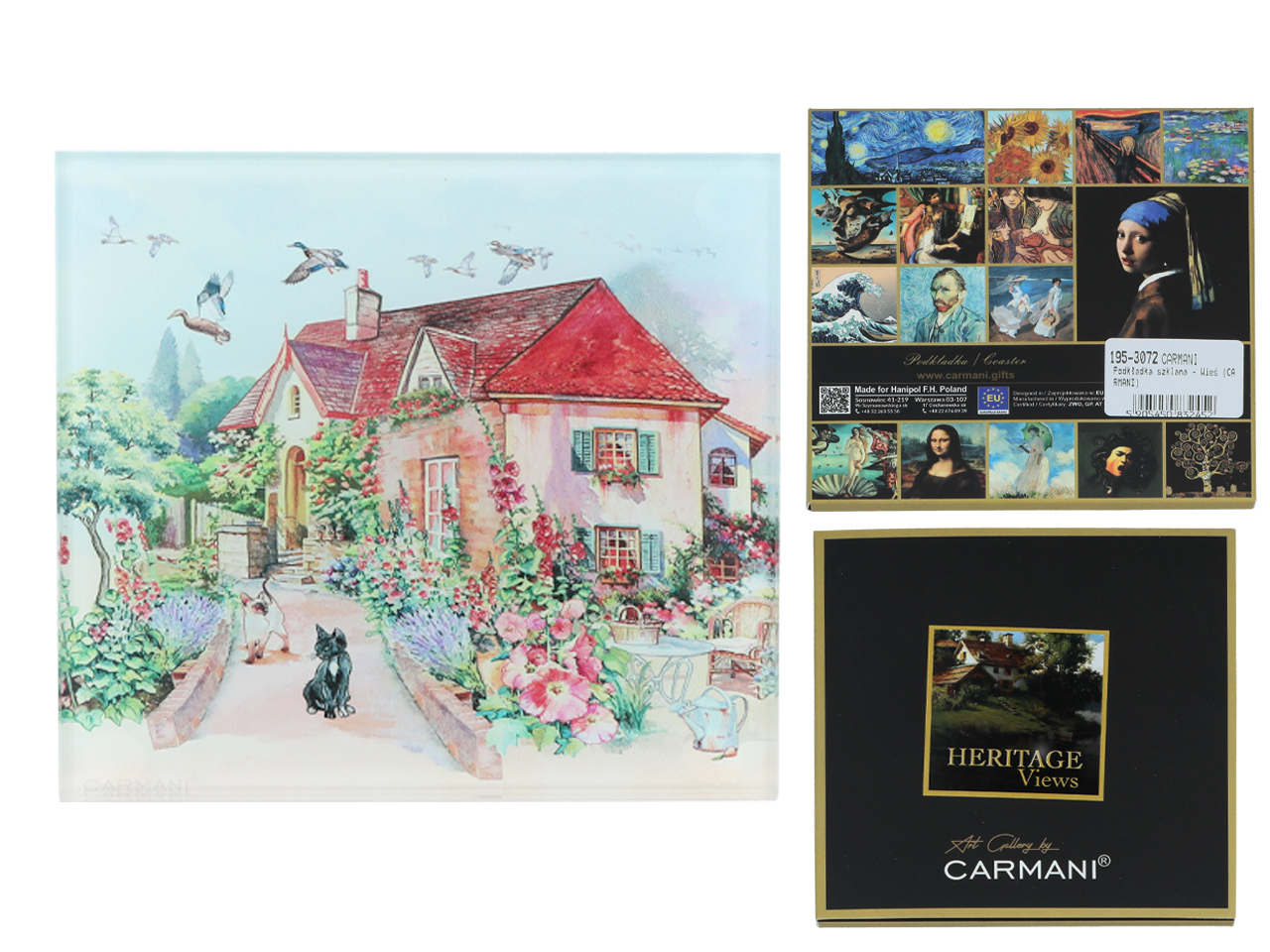 Gustowna, kwadratowa podkładka pod kubek ozdobiona sielskim, wiejskim krajobrazem przyda się nie tylko w domach na wsi.