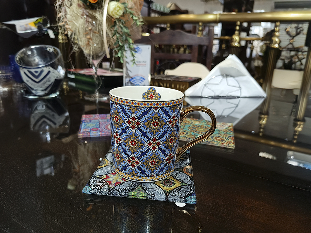 Gustowna, kwadratowa podkładka pod kubek ozdobiona motywami zaczerpniętymi z orientu ożywi stylizację każdego stołu.