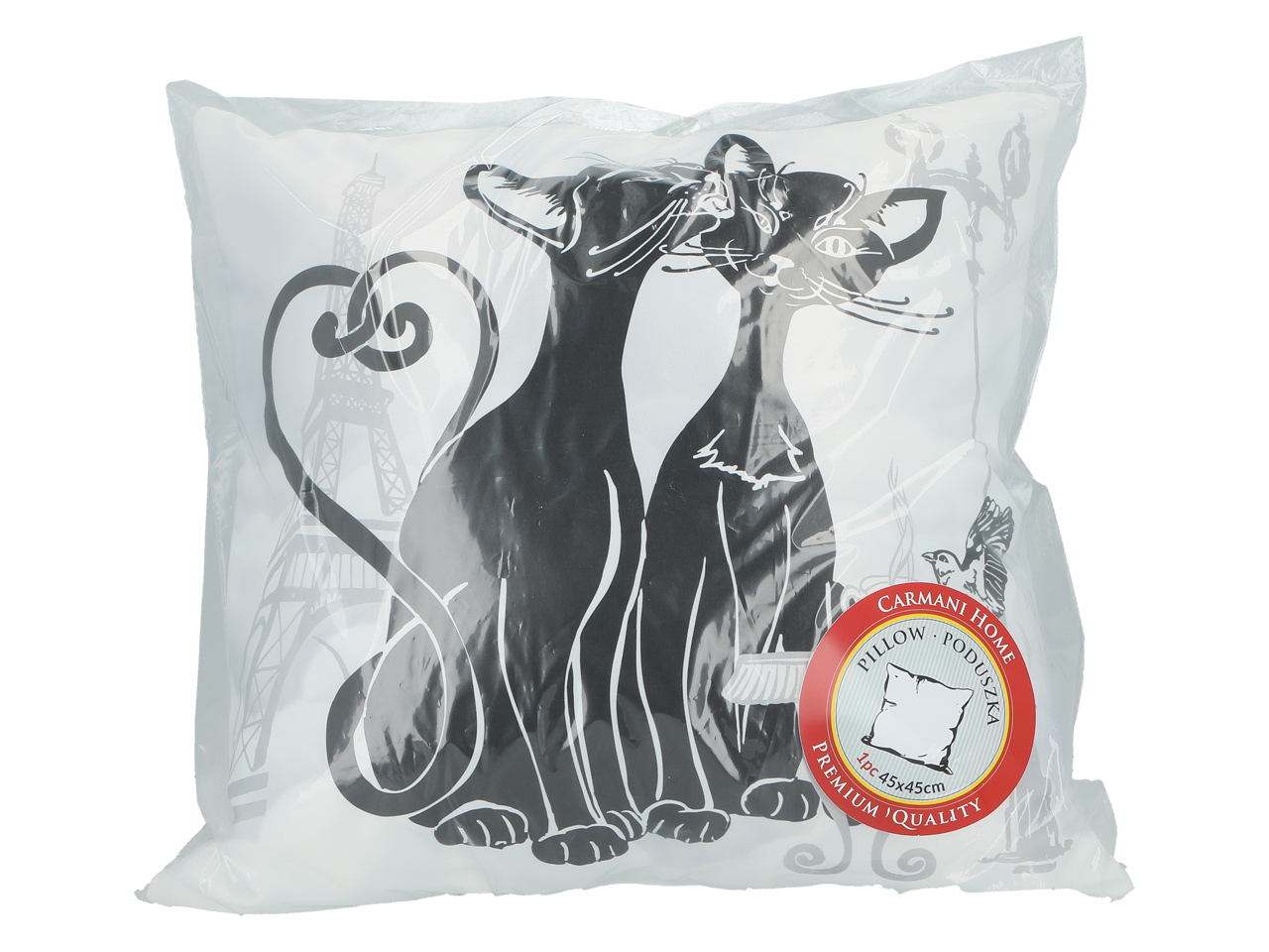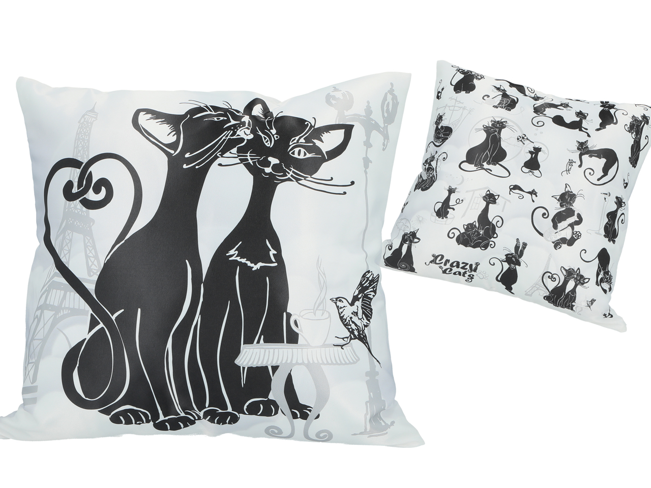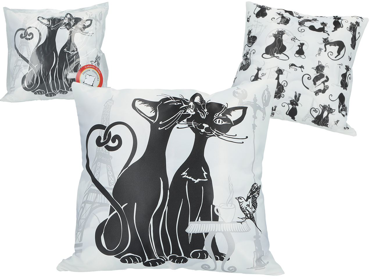 Poduszka z wypełnieniem/suwak – Koci świat, Koty w Paryżu (białe tło) (CARMANI)
