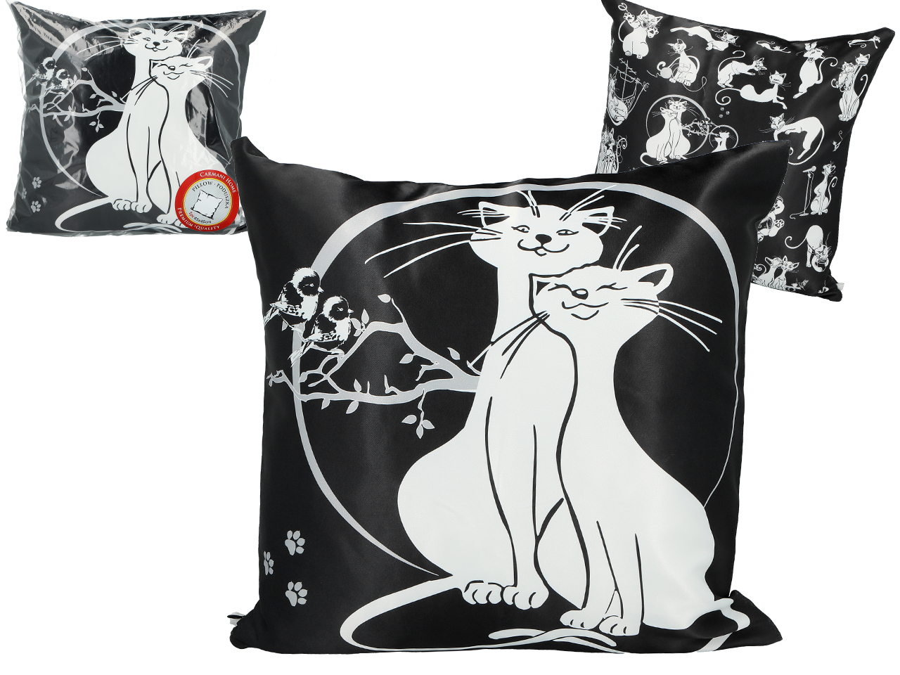 Poduszka z wypełnieniem/suwak – Koci świat, Zakochane koty (czarne tło) (CARMANI)