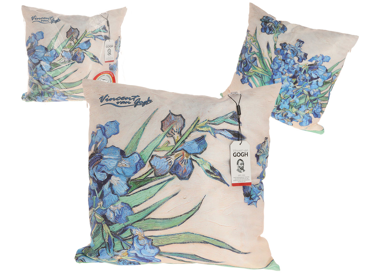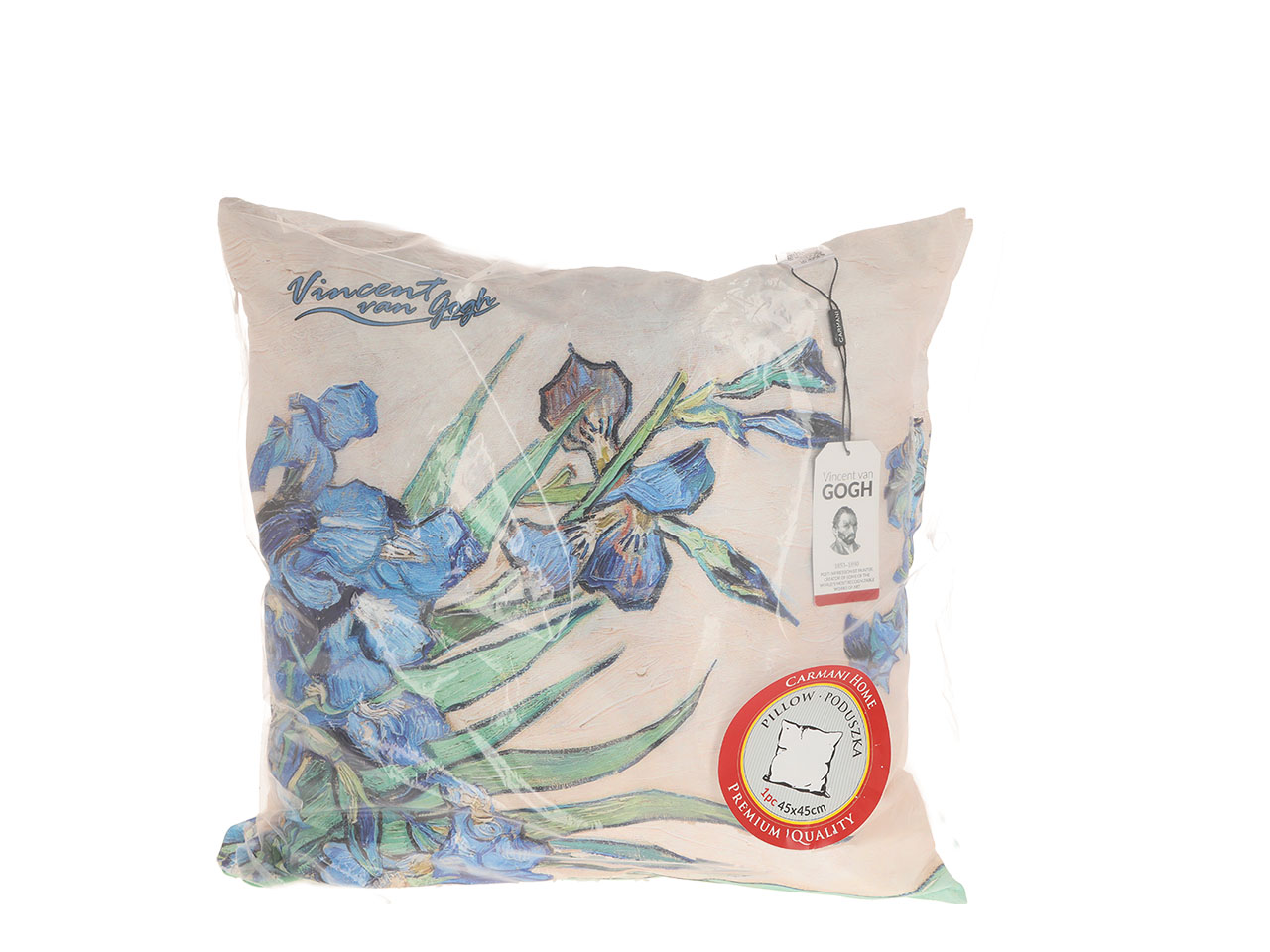Poduszka z wypełnieniem/suwak – V. van Gogh, Irysy (kremowe tło) (CARMANI)