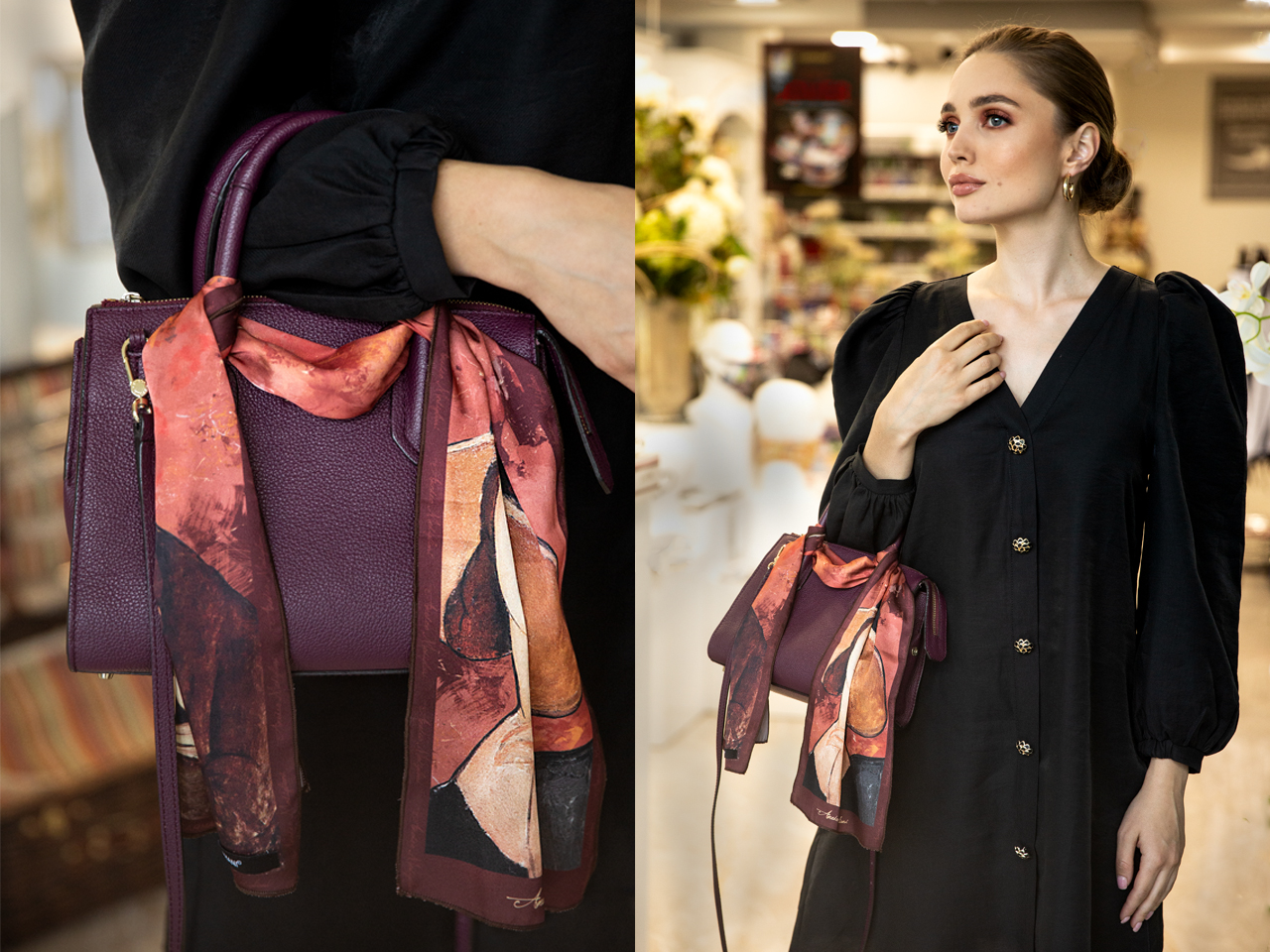Przywieszki do torebki marki CARMANI wykonane są z innowacyjnej tkaniny tamina szlachetna, która pozwala na wykonanie misternych wzorów przy zachowaniu jedwabistego dotyku.
