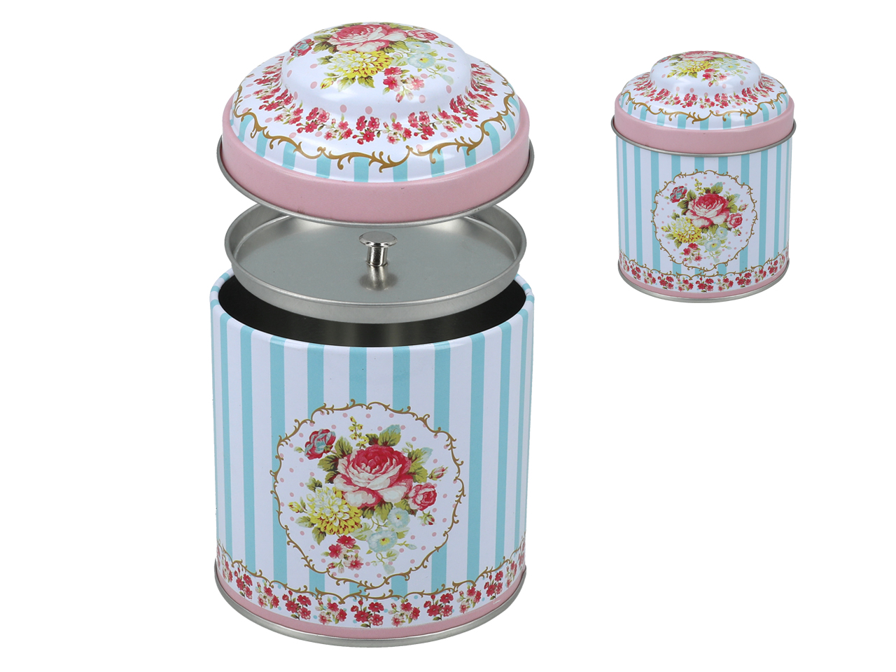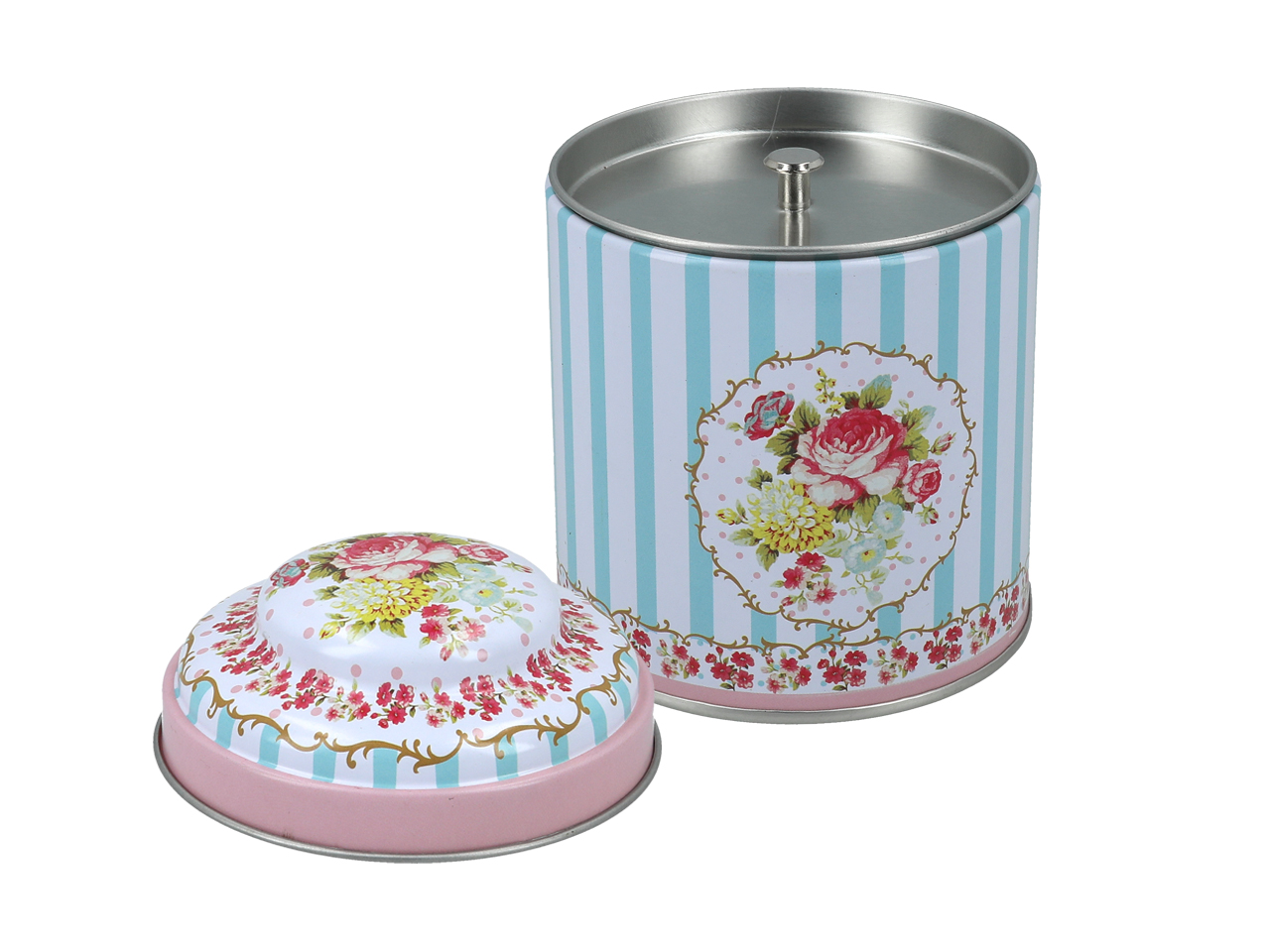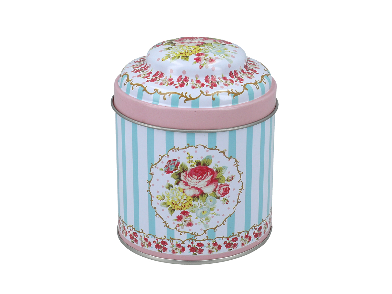 Niewielka puszka z uroczą, kwiatową dekoracją. Posiada dodatkowe zamknięcie, które skutecznie uniemożliwia ulatnianie się aromatu kawy czy herbaty.