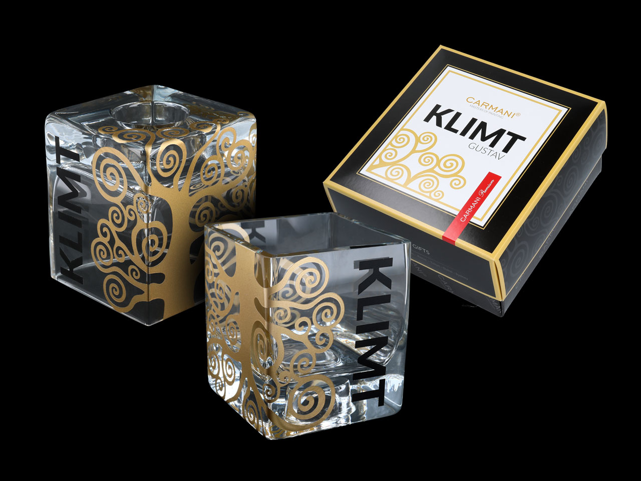 Wazon – Świecznik szklany mały złocony – G. Klimt. Drzewo życia (CARMANI)