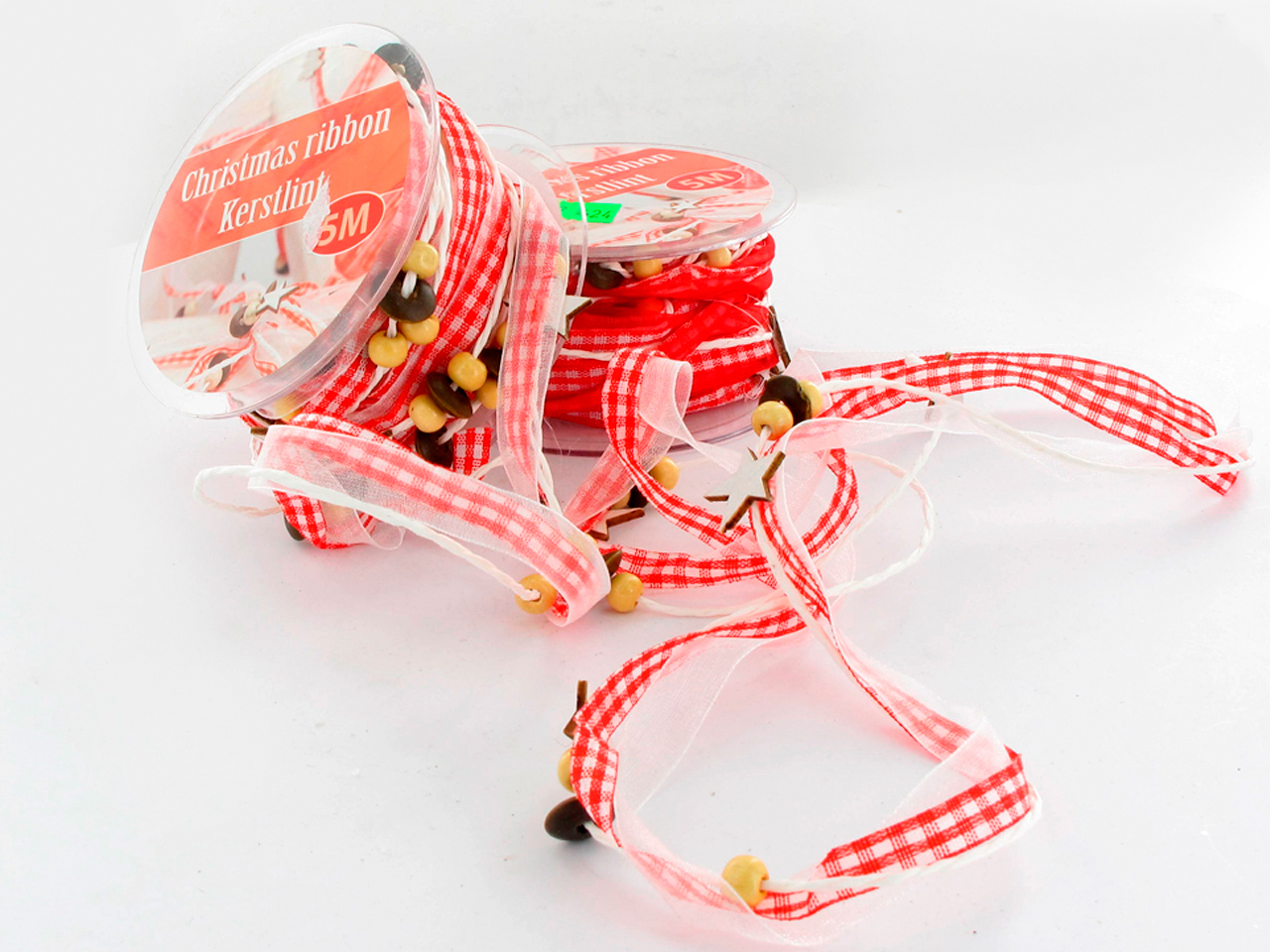 Wstążka ozdobiona koralikami to uroczy element dekoracyjny, który dodaje blasku i uroku świątecznym aranżacjom.