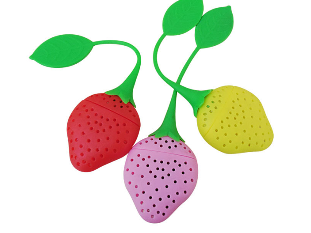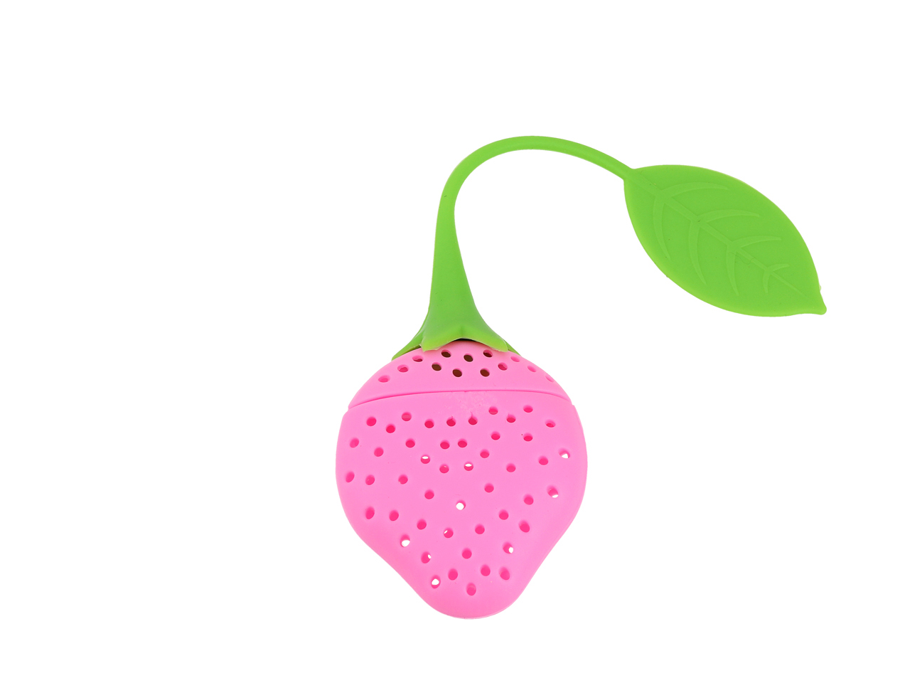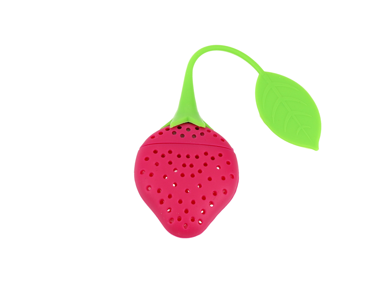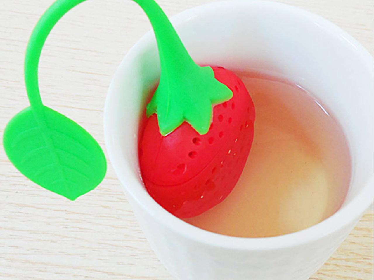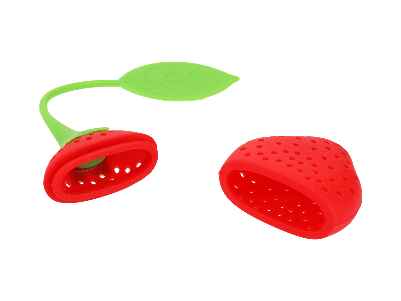 Zaparzacz do herbaty w kształcie truskawki. Świetnie się prezentują, stąd są dobrym pomysłem na prezent dla koneserów herbat liściastych.