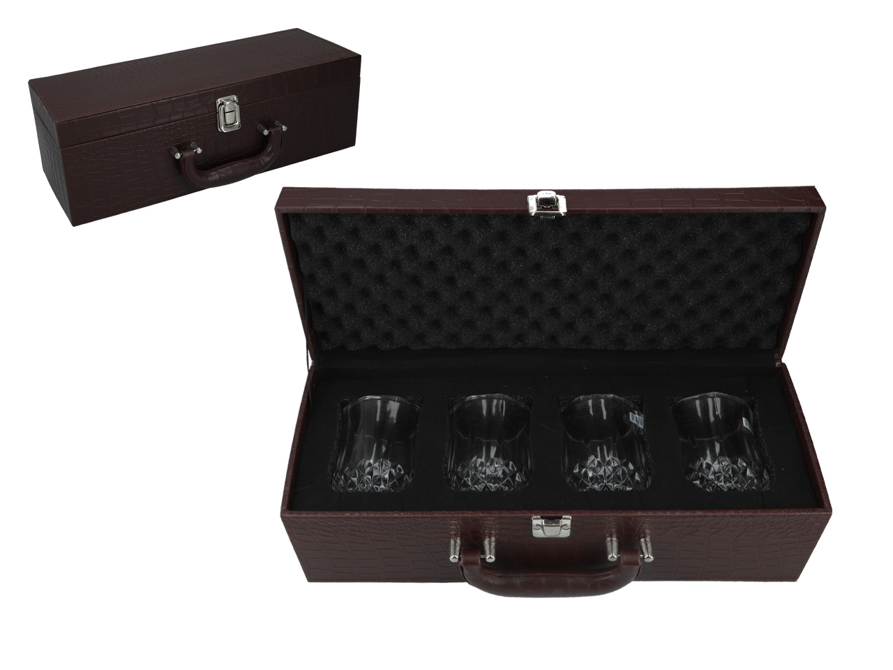 Komplet 4 szklanek w elegankckiej walizce, to idealny prezent dla każdego faceta.