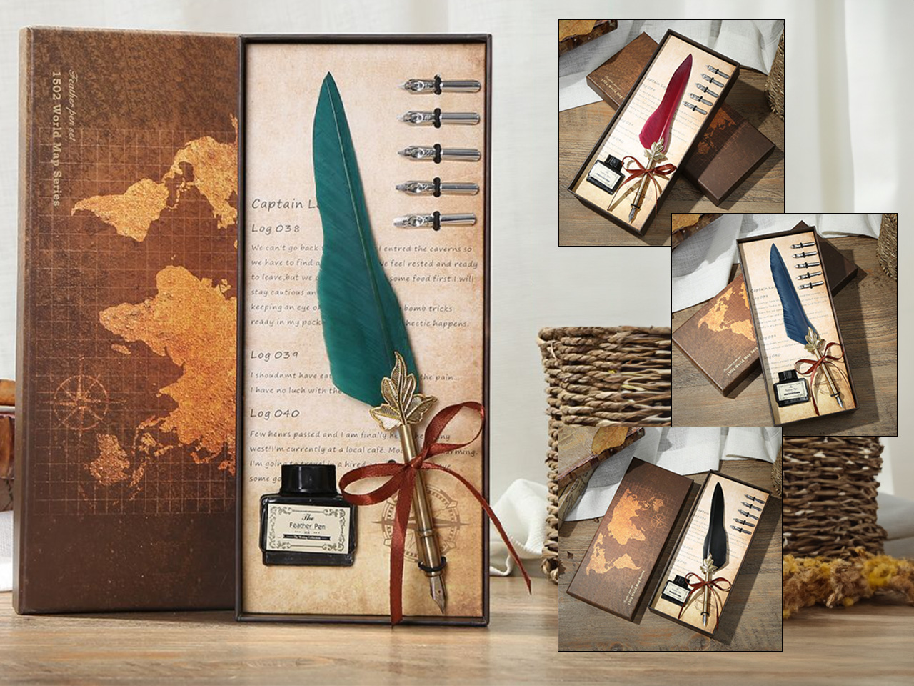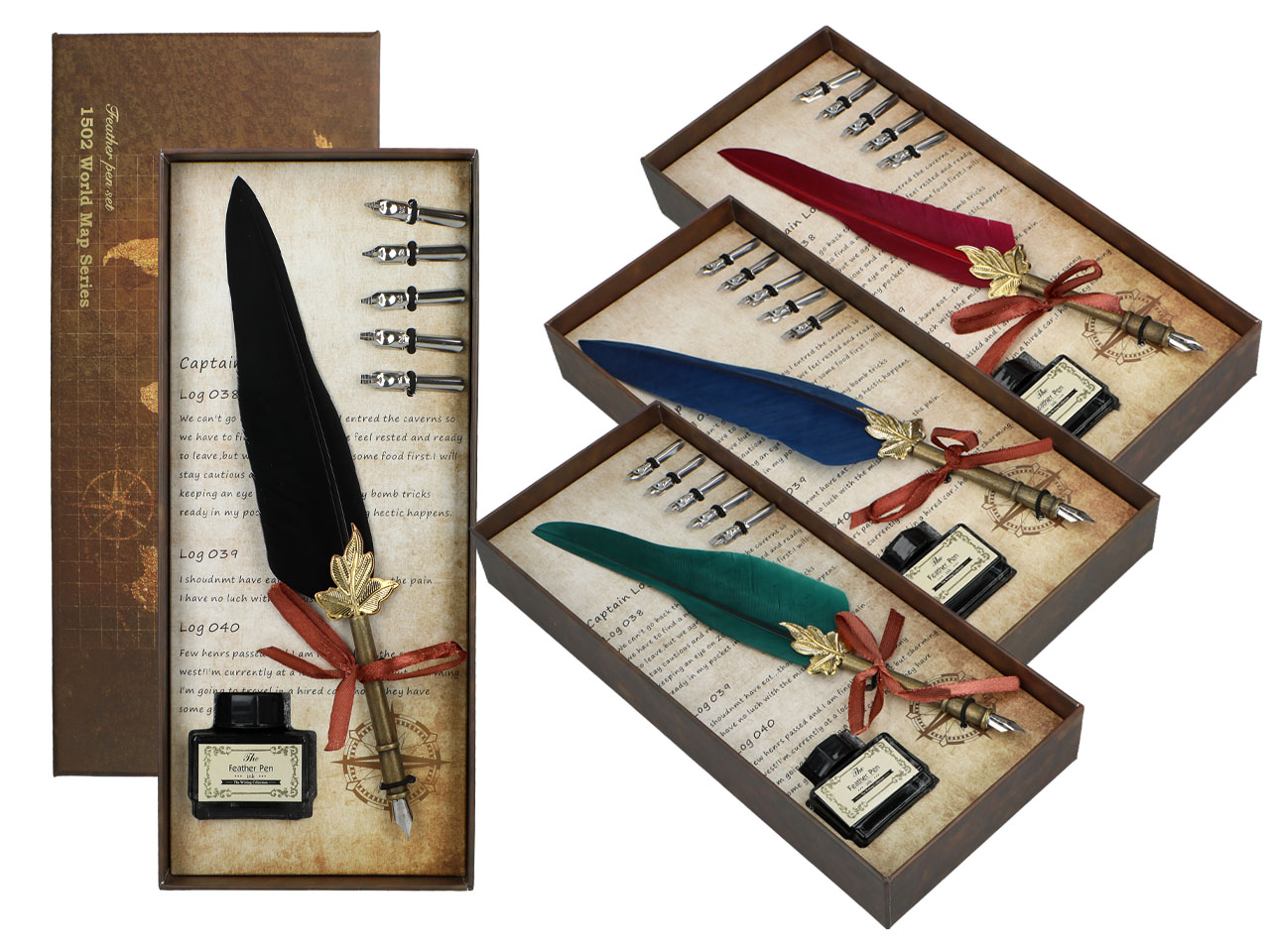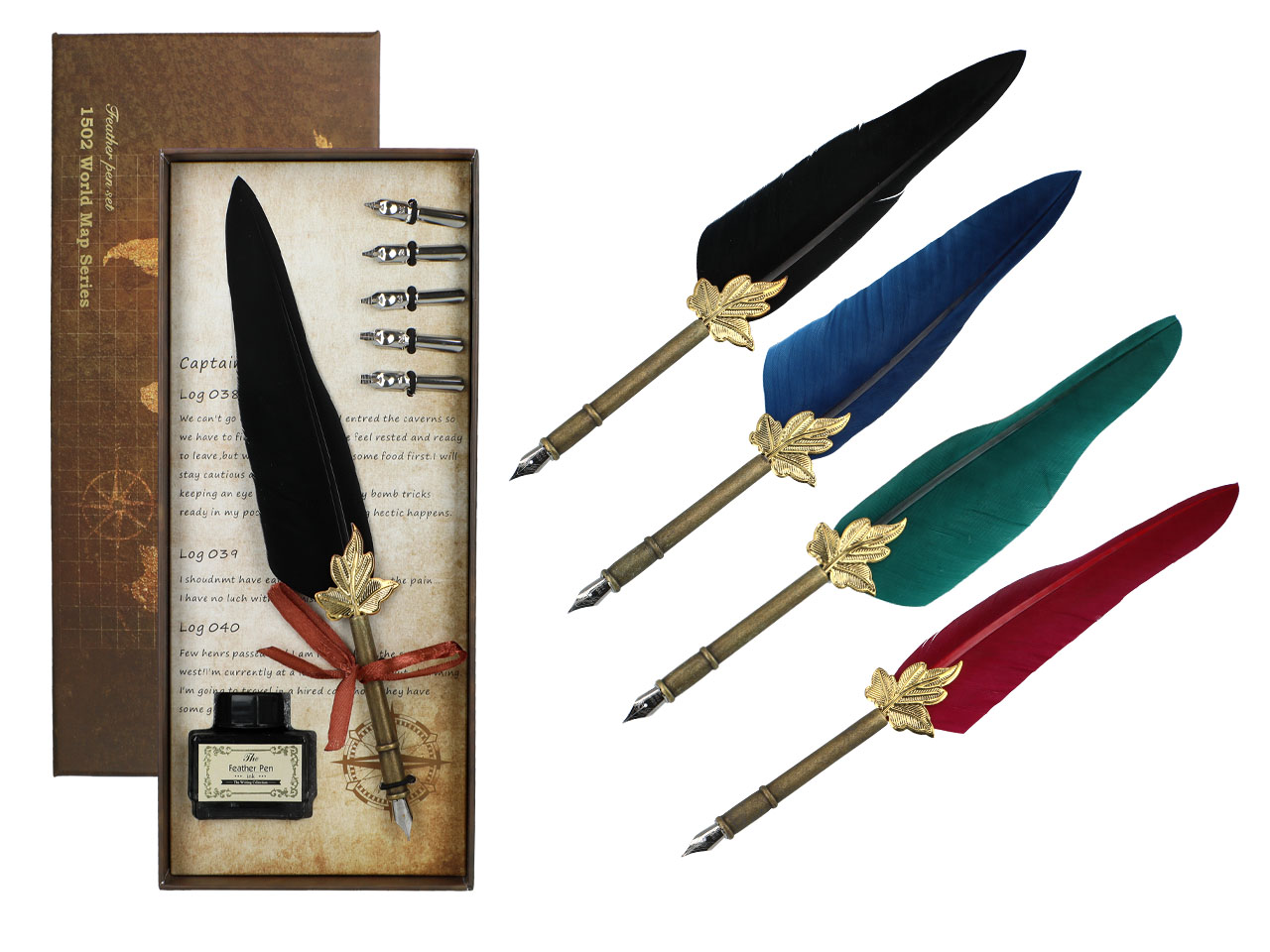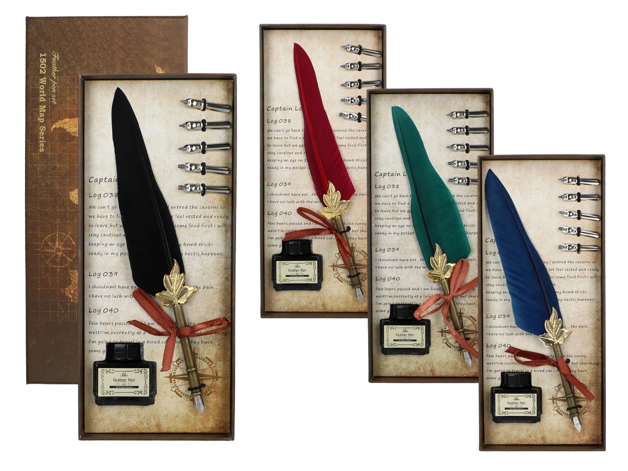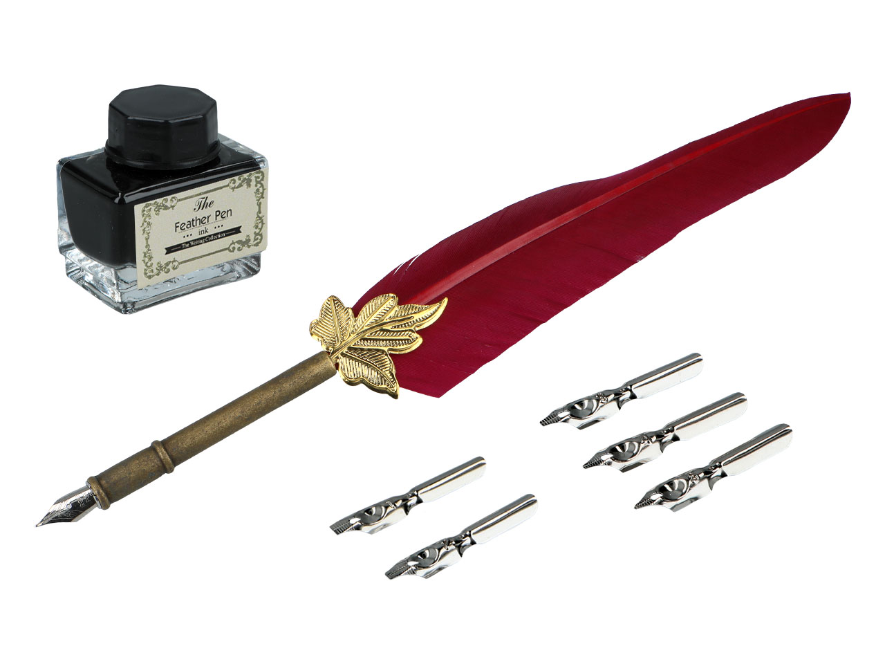 Zestaw piśmienniczy – Pióro z wymiennymi stalówkami i atramentem (mix 4 kolorów)